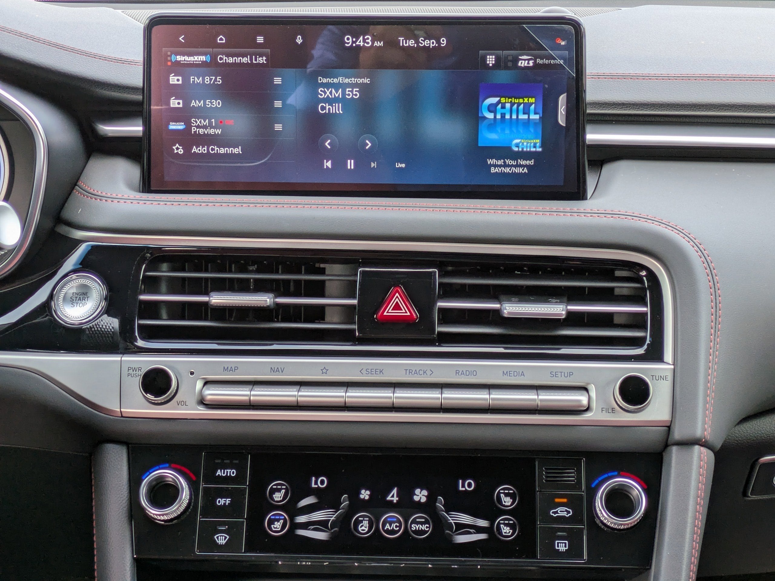 - Radio: AM/FM/HD Lexicon Prem Audio System -inc: QuantumLogic surround sound, 15 high efficiency speakers including 2 subwoofers, Lexicon 11-channel digital external amplifier, speed-sensing, 5th generation navigation system w/10.25" touchscreen, dynamic voice recognition, connected routing, over the air updates, Android Auto and Apple CarPlay, USB connectivity, SiriusXM satellite radio w/90-day trial subscription (not available in Alaska or Hawaii), Genesis connected services, Bluetooth® hands-free phone and audio streaming system
