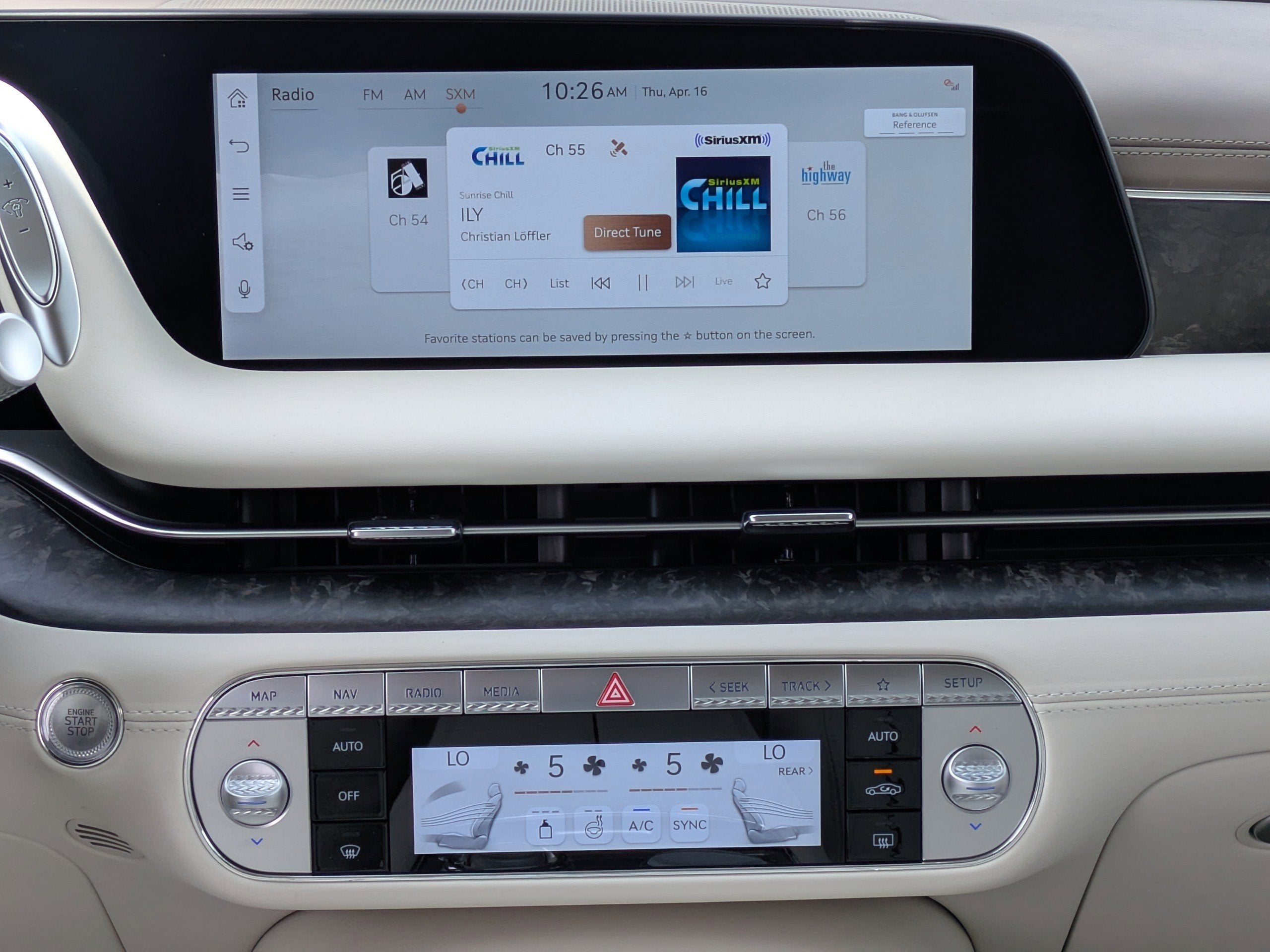 - Radio: AM/FM Bang & Olufsen 3D Prem Audio System -inc: HD radio, navigation system w/12.3" HD screen, SiriusXM radio w/90-day subscription (not available in AK & HI), wireless Apple CarPlay and Android Auto, 23 speakers, 100W x 14 channel (1400W, max, equivalent output), Genesis Connected Services, 300W auxiliary amplifier for 3D sound, Bluetooth® hands-free phone and audio streaming system, USB connectivity and Wi-Fi hotspot