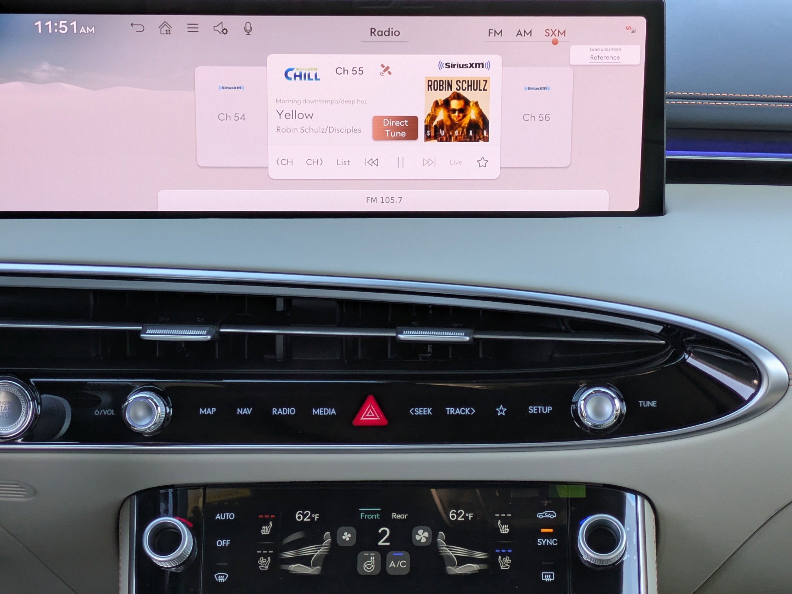 - Radio: 14.5" Navigation System w/AM/FM/HD Radio -inc: SiriusXM radio w/90-day trial subscription (N/A in AK or HI), wireless Android Auto and Apple CarPlay, cloud connected platform, Genesis Connected Services, dynamic voice recognition, Bluetooth® hands-free phone & audio streaming system, Bang & Olufsen sound system w/16 speakers, WiFi hotspot, internal amplifier and USB port