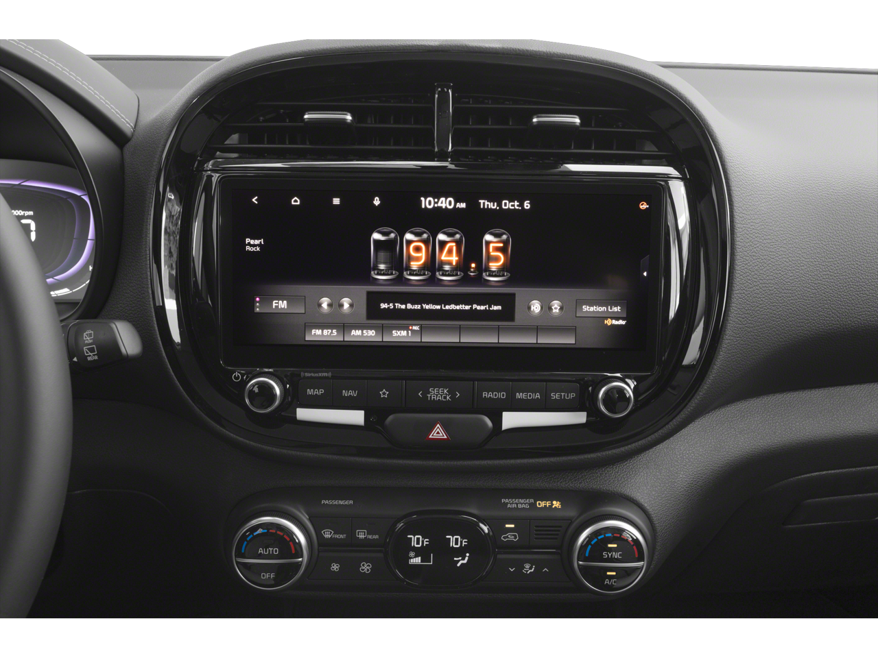 - Radio: AM/FM/MP3/HD Audio System -inc: UVO link, navigation, SiriusXM, 10.25" color touch screen, 6 speakers, support for Android Auto and Apple CarPlay, USB input, audio remote control, Bluetooth® hands-free w/voice recognition and black shark fine type antenna
