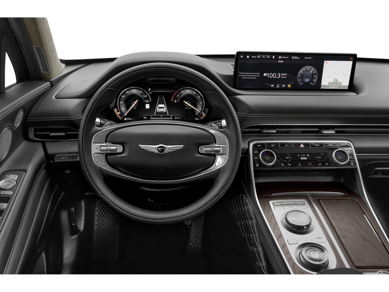 - Radio:Lexicon Premium Audio System -inc: Quantum logic surround sound, 21 high efficiency speakers, Lexicon 14-channel digital external amplifier, 14.5" navigation system, AM/FM/HD Radio, SiriusXM Radio w/90-day subscription (not available in AK or HI), Apple CarPlay and Android Auto, 12 speakers, Bluetooth® hands-free phone system w/audio streaming, wireless phone charger, Wi-Fi hotspot, steering wheel controls, USB and Genesis Connected Services